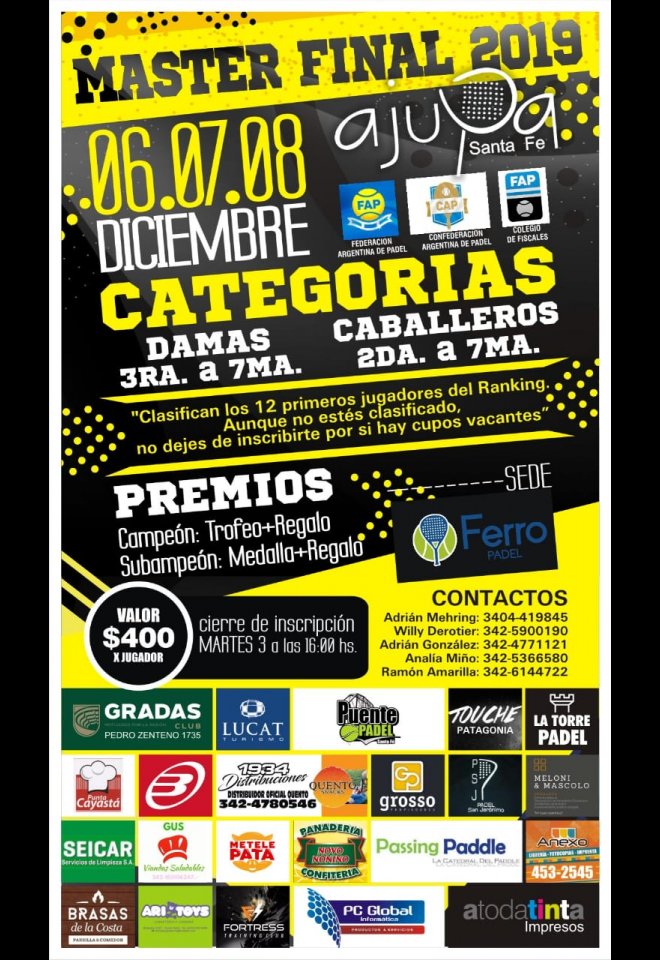 »» Evento: MASTER FINAL »» Localidad: Santa Fe »» Fechas: 06/12/2019 al 08/12/2019