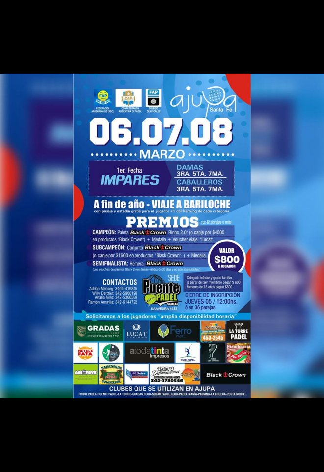 »» Evento: Etapa 1 2020 - Impares »» Localidad: Santa Fe | Santo Tomé »» Fechas: 06/03/2020 al 08/03/2020