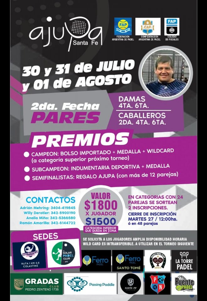 »» Evento: Etapa 3 - Torneo MARIO CARPE - Pares »» Localidad: Santa Fe »» Fechas: 29/07/2021 al 01/08/2021