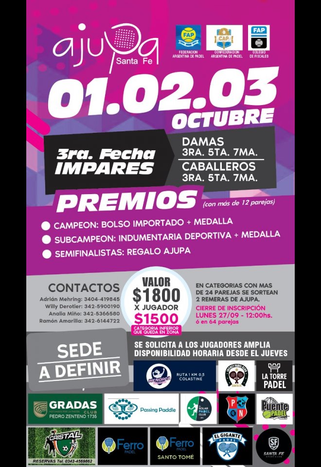 »» Evento: ULTIMA FECHA IMPARES »» Localidad: Santa Fe | Santo Tomé »» Fechas: 30/09/2021 al 03/10/2021