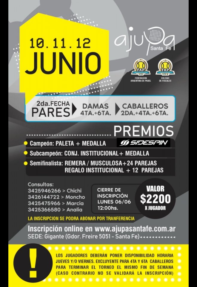»» Evento: 2DA FECHA PAR »» Localidad: Santa Fe »» Fechas: 09/06/2022 al 12/06/2022