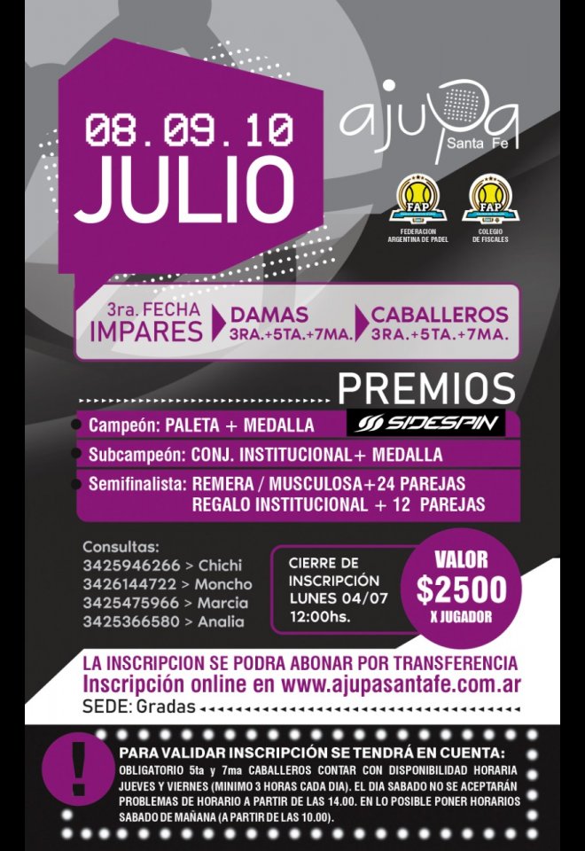 »» Evento: 3RA FECHA IMPAR »» Localidad: Santa Fe »» Fechas: 07/07/2022 al 10/07/2022