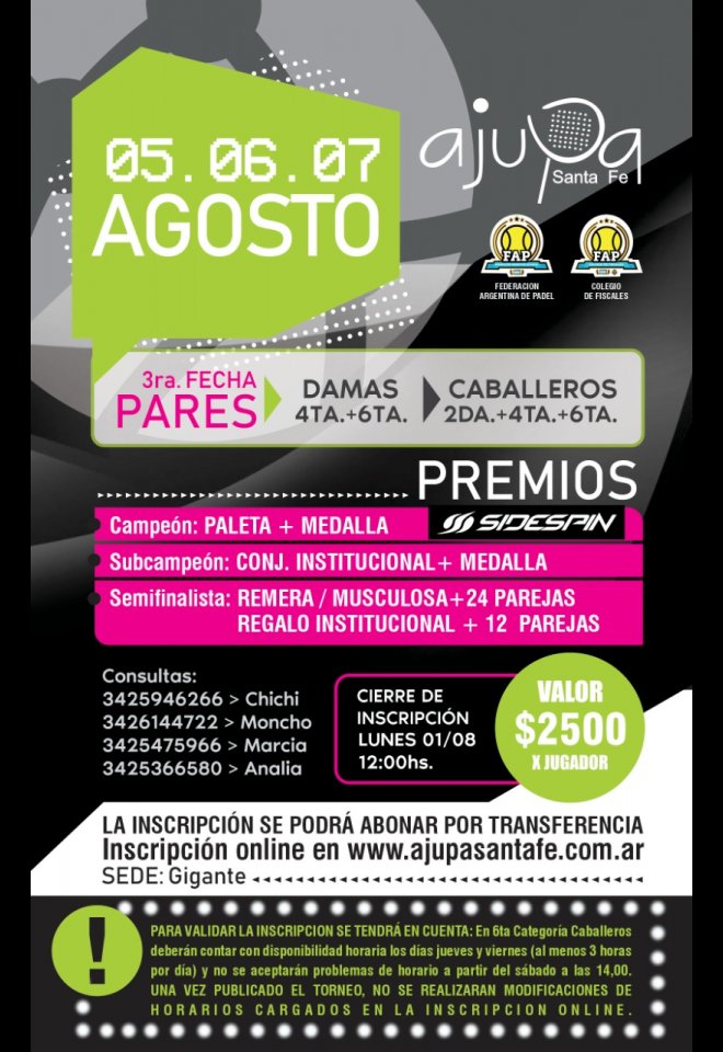 »» Evento: 3er FECHA PAR »» Localidad: Santa Fe »» Fechas: 04/08/2022 al 07/08/2022